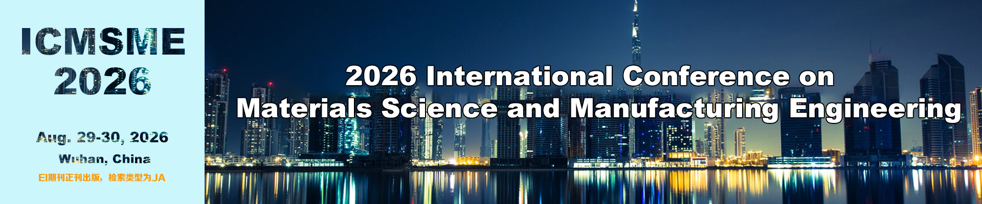 2026 International Conference on Materials Science and Manufacturing Engineering (ICMSME 2026) will be held on Aug. 29-30, 2026 in Wuhan, China. The aim of ICMSME 2026 is to provide a platform for researchers, engineers, academicians as well as industrial professionals from all over the world to present their research results and development activities Materials Science and Manufacturing Engineering. It provides opportunities for the delegates to exchange new ideas and application experiences, to establish business or research relations and to find global partners for future collaboration.All accepted papers will be submitted to SCI/EI Journals Publication.