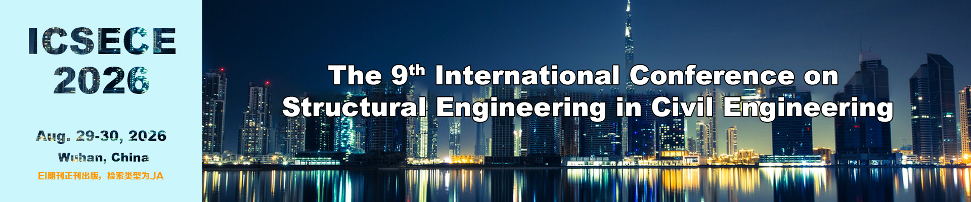 The 9th International Conference on Structural Engineering in Civil Engineering (ICSECE 2026) will be held on Aug. 29-30, 2026 in Wuhan, China. The aim of ICSECE 2026 is to provide a platform for researchers, engineers, academicians as well as industrial professionals from all over the world to present their research results and development activities Civil Engineering and Structural Durability. It provides opportunities for the delegates to exchange new ideas and application experiences, to establish business or research relations and to find global partners for future collaboration.All accepted papers will be submitted to SCI/EI Journals Publication.