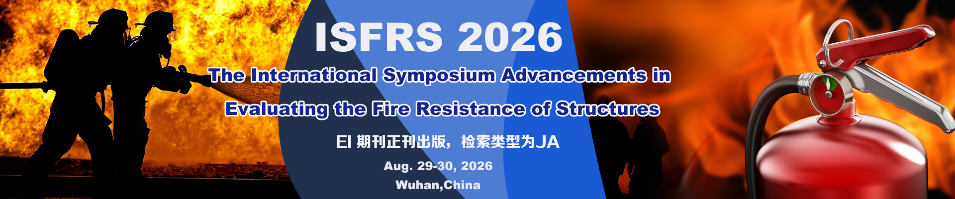2026结构防火工程评估进展国际研讨会(ISFRS 2026)于2026年8月 29-30日在武汉举行,ISFRS 2026致力于为防火工程与结构工程、防火材料、消防安全科学、消防化学与物理、防火结构的评估与进展 等领域的专家学者提供一个学术交流和建立友谊的平台,使大家能够分享最新优秀的论文和研究成果,并共同 探讨关注行业发展问题。本次投稿录用的所有论文将推荐至EI期刊正刊出版 .检索类型JA. 部分高质量文章直接推荐至相关SCI期刊出版.(具体期刊信息、注册费用和出版时间 在您投稿后有详细的邮件信息回复您)