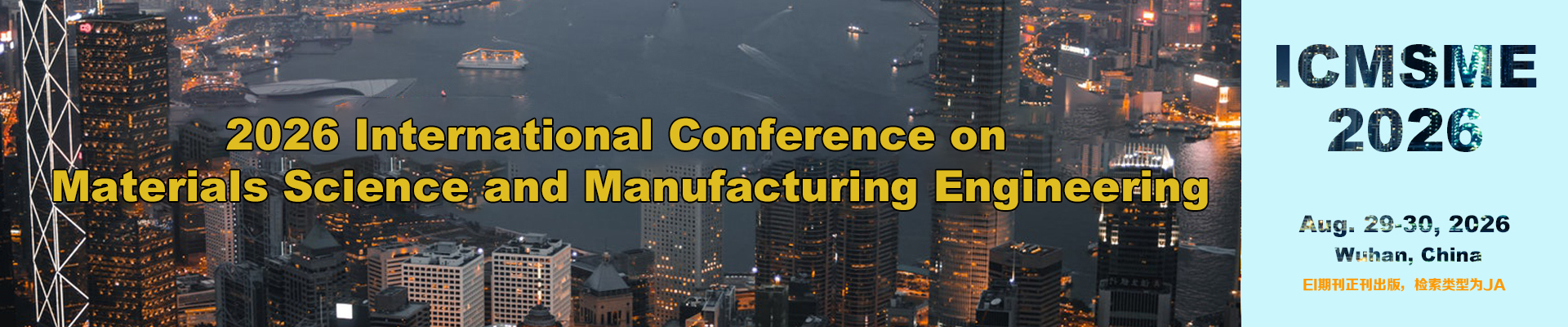 2026 International Conference on Materials Science and Manufacturing Engineering (ICMSME 2026) will be held on Aug. 29-30, 2026 in Wuhan, China. The aim of ICMSME 2026 is to provide a platform for researchers, engineers, academicians as well as industrial professionals from all over the world to present their research results and development activities Materials Science and Manufacturing Engineering. It provides opportunities for the delegates to exchange new ideas and application experiences, to establish business or research relations and to find global partners for future collaboration.All accepted papers will be submitted to SCI/EI Journals Publication.